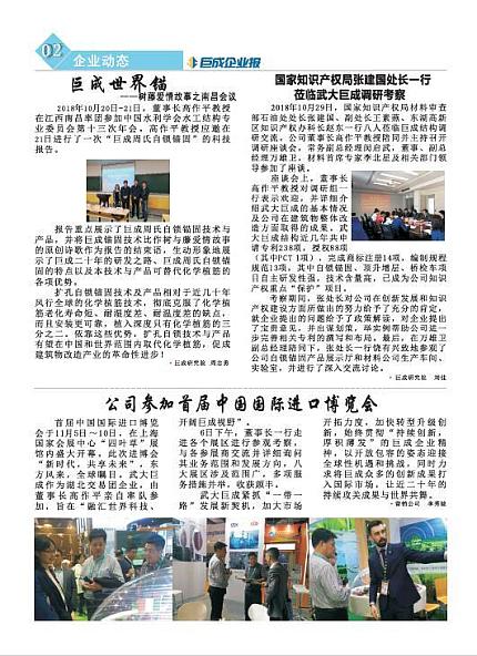 2018年10月29日,国家知识产权局材料审查部石油处处长张建国、副处长王素燕、东湖高新区知识产权办科长赵东一行八人莅临AG庄闲结构调研交流。公司董事长高作平教授陪同并主持召开调研座谈会,常务副总经理闵启武,董事、副总经理万雄卫,材料首席专家李北星及相关部门领导参加了座谈。