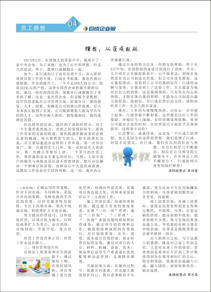 如今,在AG庄闲的日子也有近两个月,从入职培训到目前工作的开展,AG庄闲在考验我,我也在细心观察他。年会的报告上,一个不足200人的公司,创造出2亿元的产值,这使在国营企业的我不敢相信的。通过一段时间的培训,使我对AG庄闲渐渐有了更多的了解,这是一家民营企业,但老板全是教授,高学历的老板在公司管理方面,给我耳目一新的感觉。人才、创新、奉献是公司的核心价值观,以人为本真正做到了实处,公司能够聚集大批高学历年轻的人才,这些在刚入职时,都使我相信,我的选择没有错。